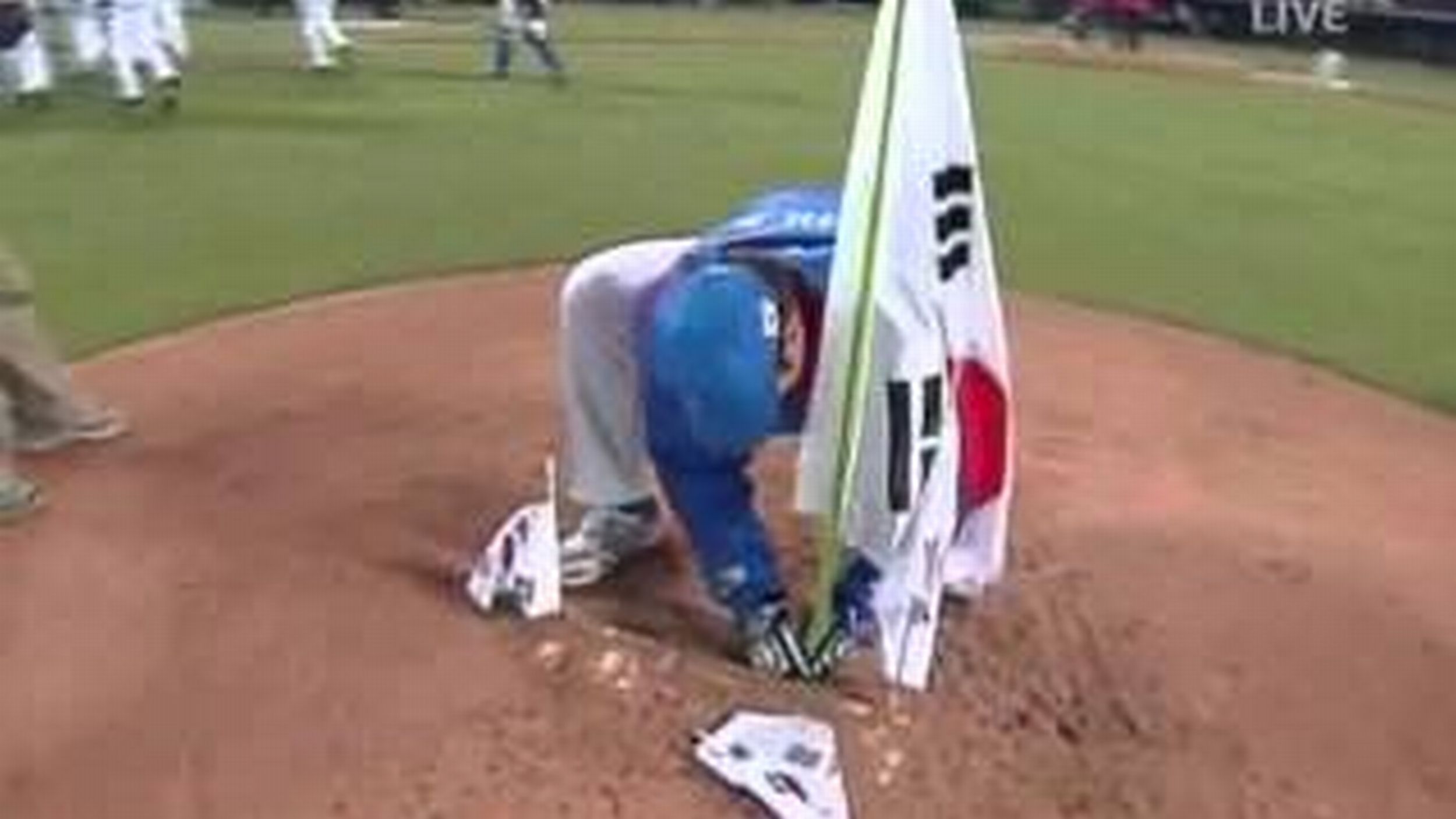 2006年のWBC第一回大会の第二ラウンドで韓国と2回目の対戦で、最初の対戦に続き敗けてしまい その戦いの後に、何とマウンドに国旗を立ててしまったのです!