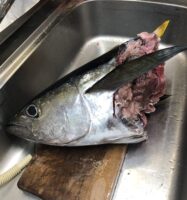 この日もう1匹 12~13kgのキメジ(キハダマグロの小さい頃の呼び名)も上げてきて、さぁ~