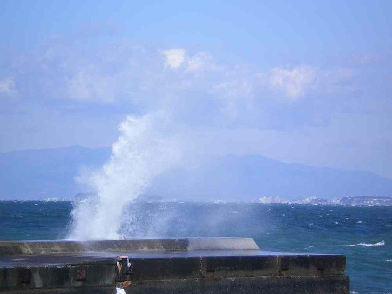 画像は帰り道寄った秋谷漁港から撮ったものですがヒドイ西風でしょ!